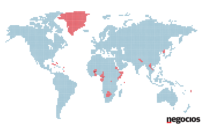 Clique nos pontos do mapa a vermelho para saber mais sobre os países para onde Portugal exporta